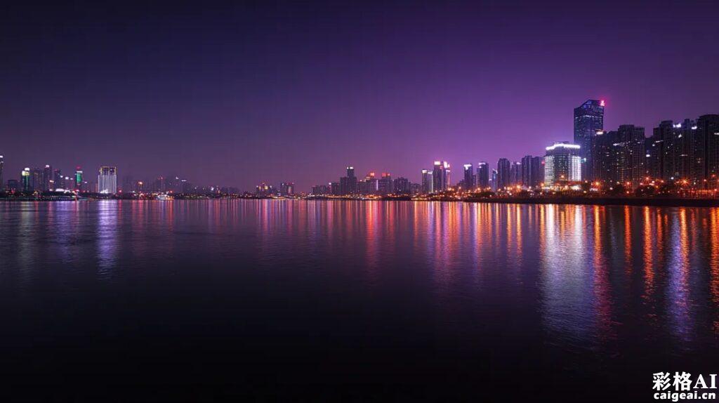 上海陆家嘴夜景,璀璨的城市灯光倒映在黄浦江上,天际线清晰,紫色调天空 --v 6.1 --style raw --q 1 --ar 16:9